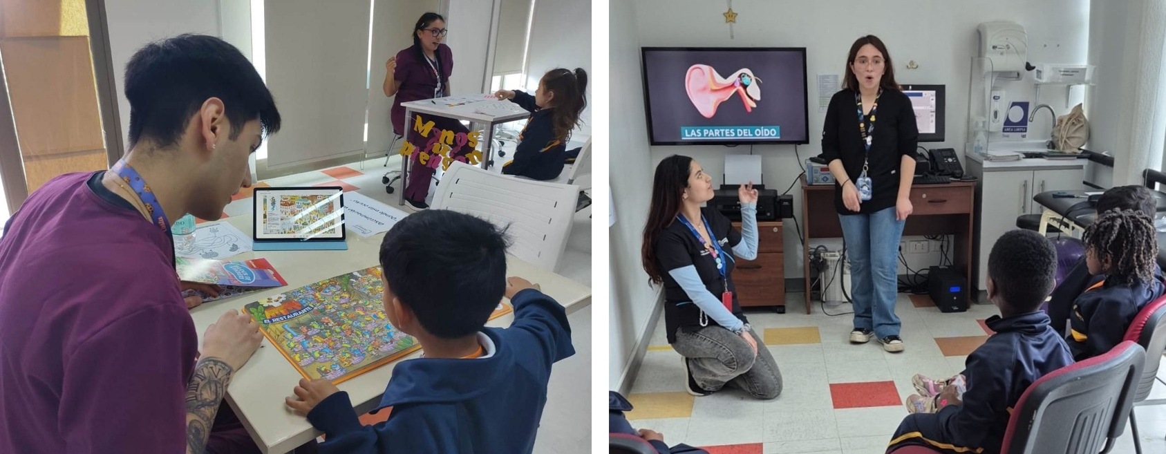 Minutos después, los escolares fueron divididos en grupos para facilitarles la interacción con los instrumentos tecnológicos y equipos que fueron dispuestos en las unidades seleccionadas: los laboratorios de oftalmología, de estudios cognitivos, de audiología y vestibular, además de algunas salas multipropósito.