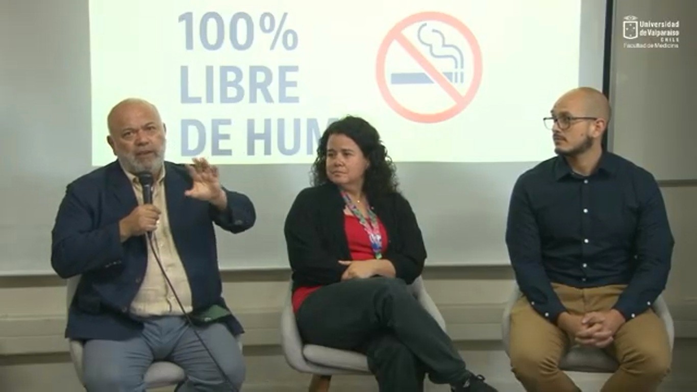 Más tarde intervinieron el kinesiólogo y magíster en Ciencias Médicas, Sebastián Ormeño, quien dio cuenta de los daños asociados al uso de vapeadores, y el cirujano dentista, doctor en Biomedicina y director de la Sociedad Chilena de Salud Pública Oral (Sochispo) Marco Cornejo, quien a su vez habló sobre los desafíos que conlleva la implementación de espacios cien por ciento libres de humo.