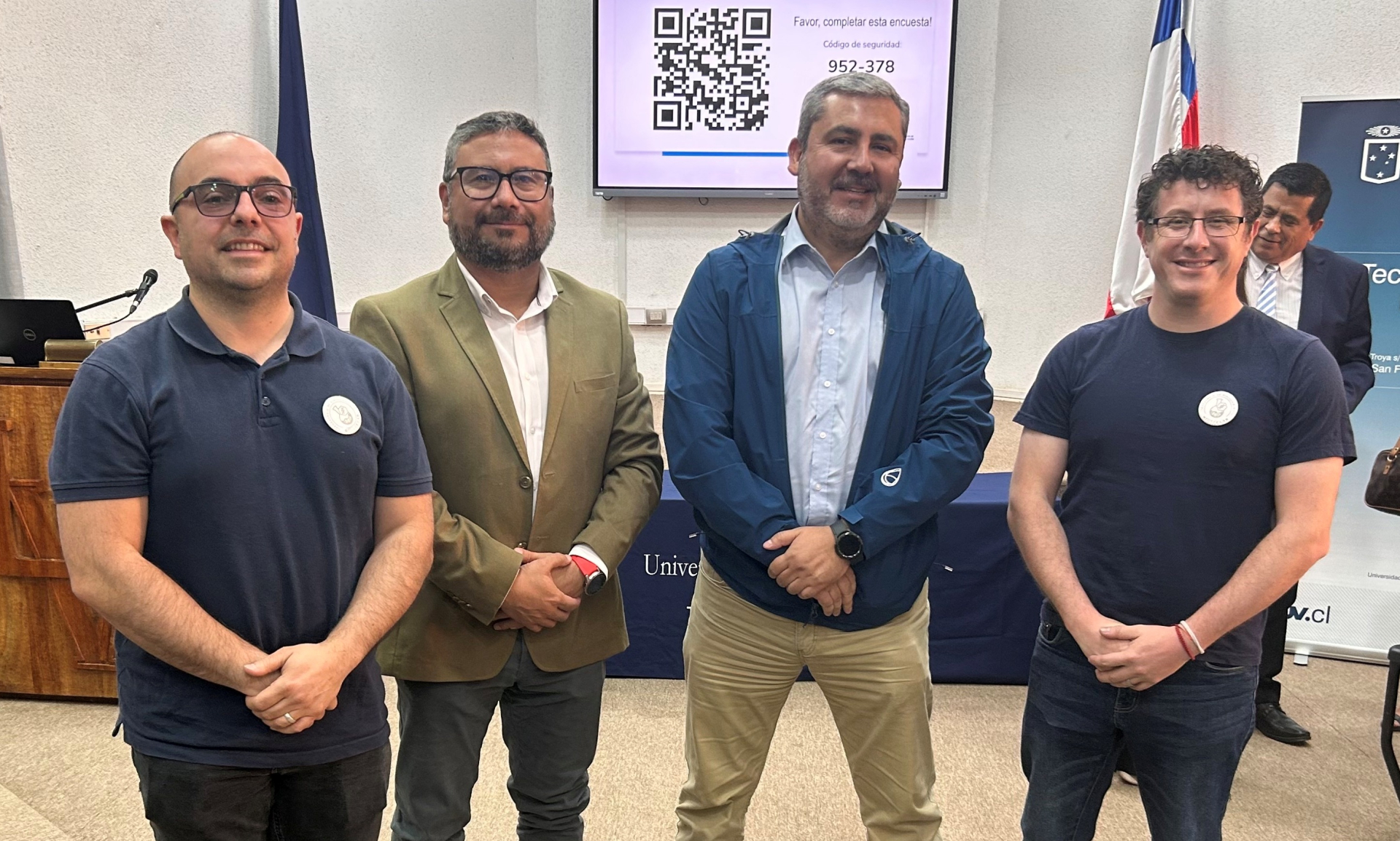 El doctor Guillermo Fernández Bunster, investigador principal y docente de Tecnología Médica UV, y Javier Tognarelli Santiago, investigador asociado del proyecto y académico de Medicina UV y del Laboratorio de Genómica UV, realizaron la secuenciación genética de la bacteria que encontraron en un predio agrícola y que se alimenta de pesticidas químicos. Así lo dieron a conocer los investigadores en la entrega de resultados a la comunidad de uno de los 43 proyectos adjudicados el año pasado por la sanitaria.