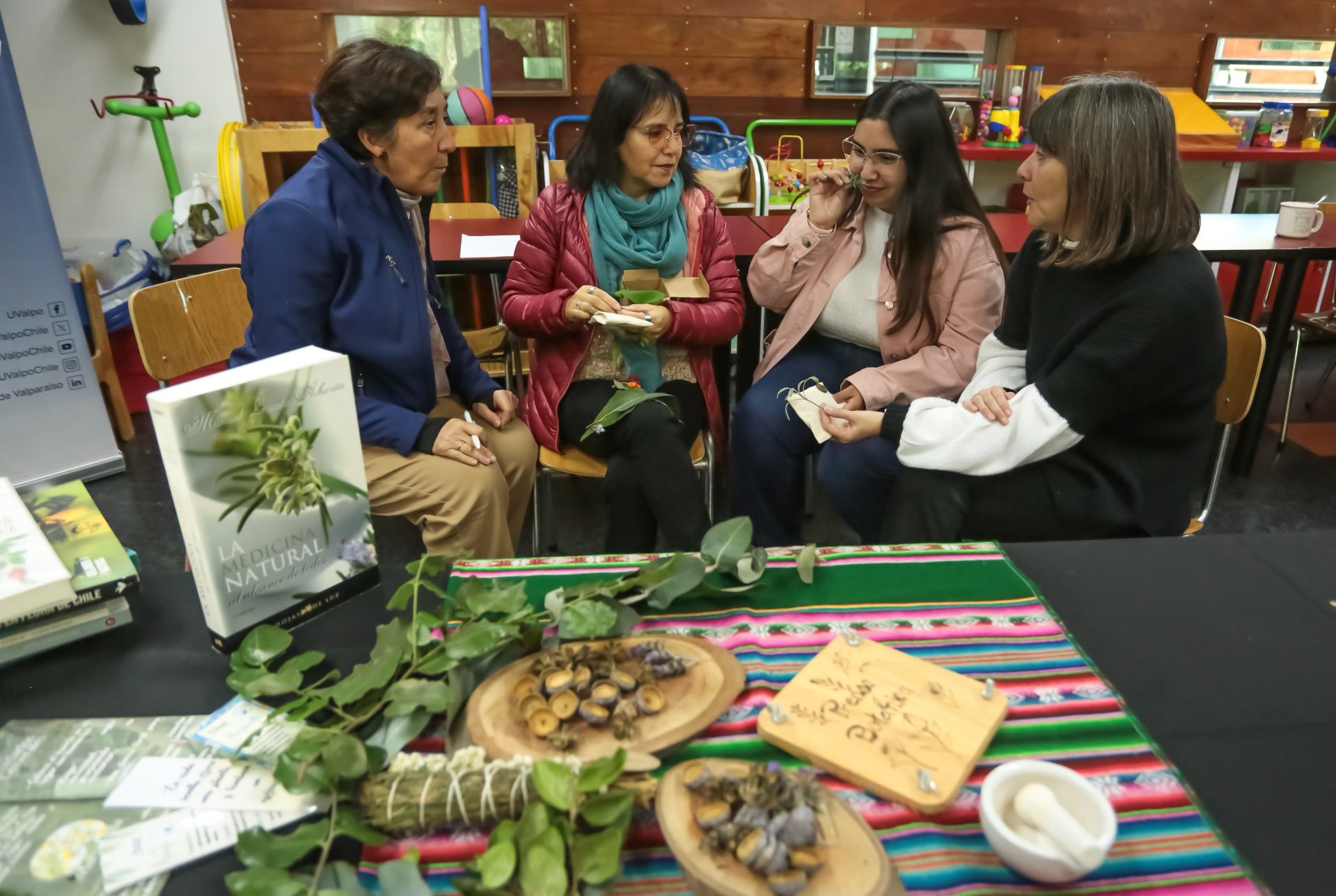 El taller incluyó, en primer término, una charla sobre las hierbas medicinales y su aporte como puente entre educación y salud, que dictó la docente de la Escuela de Educación Parvularia Claudia Donoso.